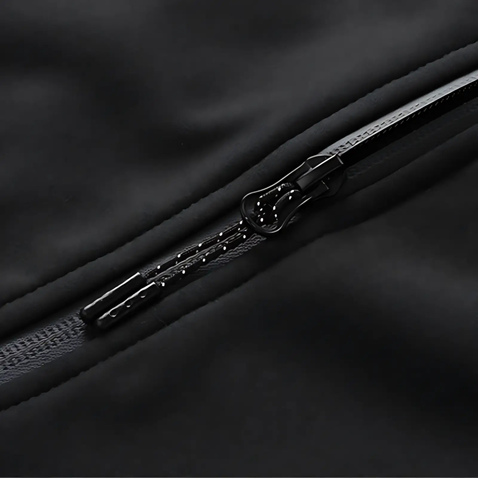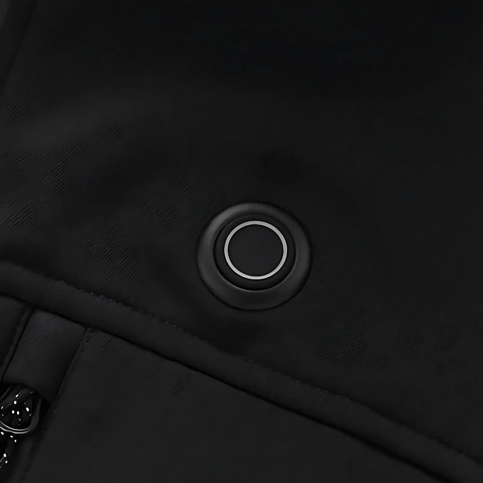 Die Stromversorgung erfolgt über eine externe Powerbank (5V USB, nicht im Lieferumfang enthalten). Das USB-Kabel ist fest in einer Innentasche integriert. Mehrfache Sicherheitssysteme schützen vor Unterspannung und Überhitzung. Das winddichte Softshell-Gewebe bietet zusätzliche thermische Isolierung auch ohne aktivierte Heizfunktion.