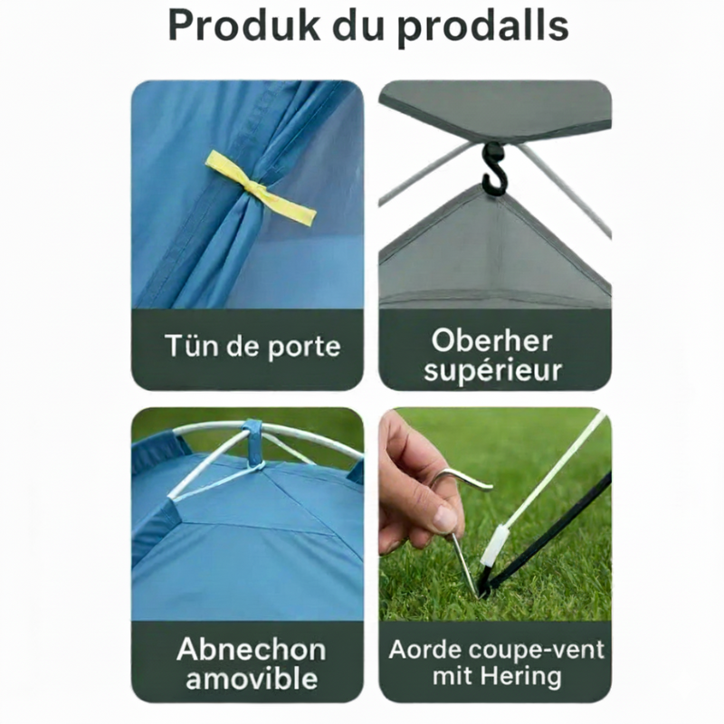• Pop-up-Aufbau in 10 Sekunden: Selbstaufstellendes System mit flexiblen Glasfaser-Stangen ermöglicht Schnellmontage ohne komplizierte Anleitung