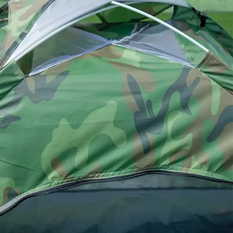 Die einwandige Konstruktion aus aluminisiertem Taft-Gewebe reduziert das Gewicht und bietet gleichzeitig wasserabweisende Eigenschaften. Die flexiblen Glasfaser-Stangen sorgen für strukturelle Stabilität bei kompaktem Packmaß. Geeignet für Trekkingtouren, Bikepacking und schnelle Biwak-Einsätze bei trockenen bis mäßig feuchten Bedingungen.