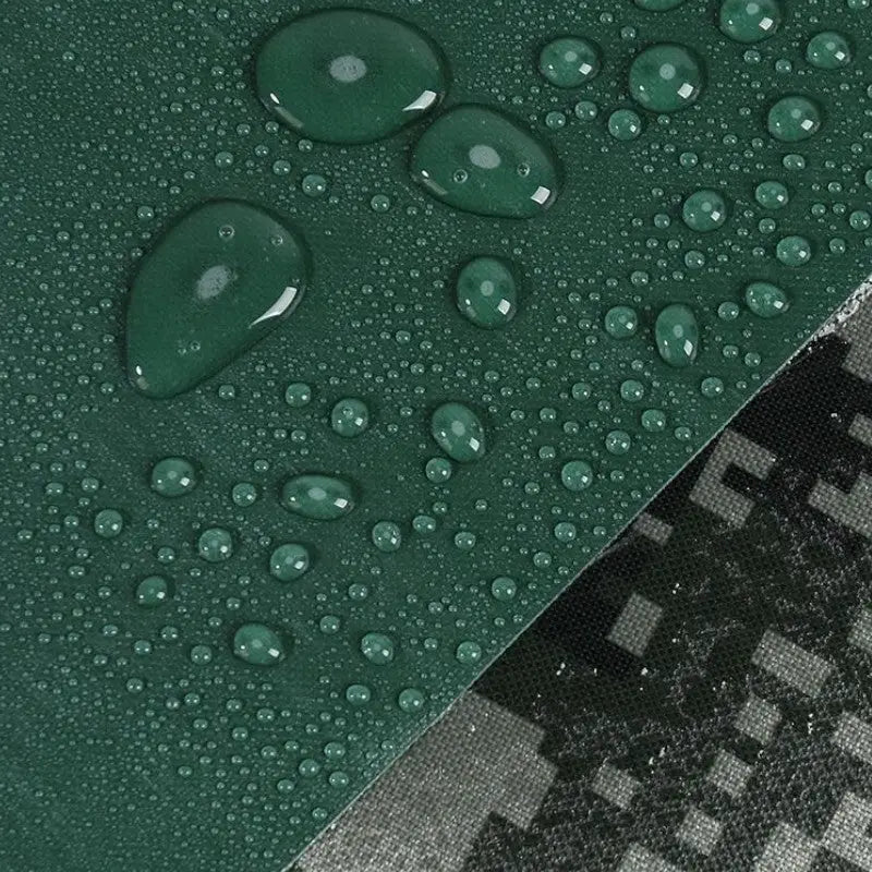 Bushcraft Tarnplane aus robustem PVC-Gewebe mit Camouflage-Muster für natürliche Tarnwirkung in verschiedenen Geländearten. Die wasserdichte Beschichtung bietet zuverlässigen Schutz gegen Feuchtigkeit und Nässe. Verstärkte Metallösen an den Ecken und Seiten ermöglichen flexible Befestigungsmöglichkeiten und verschiedene Aufbauvarianten. Durch die beidseitige Verwendbarkeit kann die Plane je nach Bedarf eingesetzt werden.