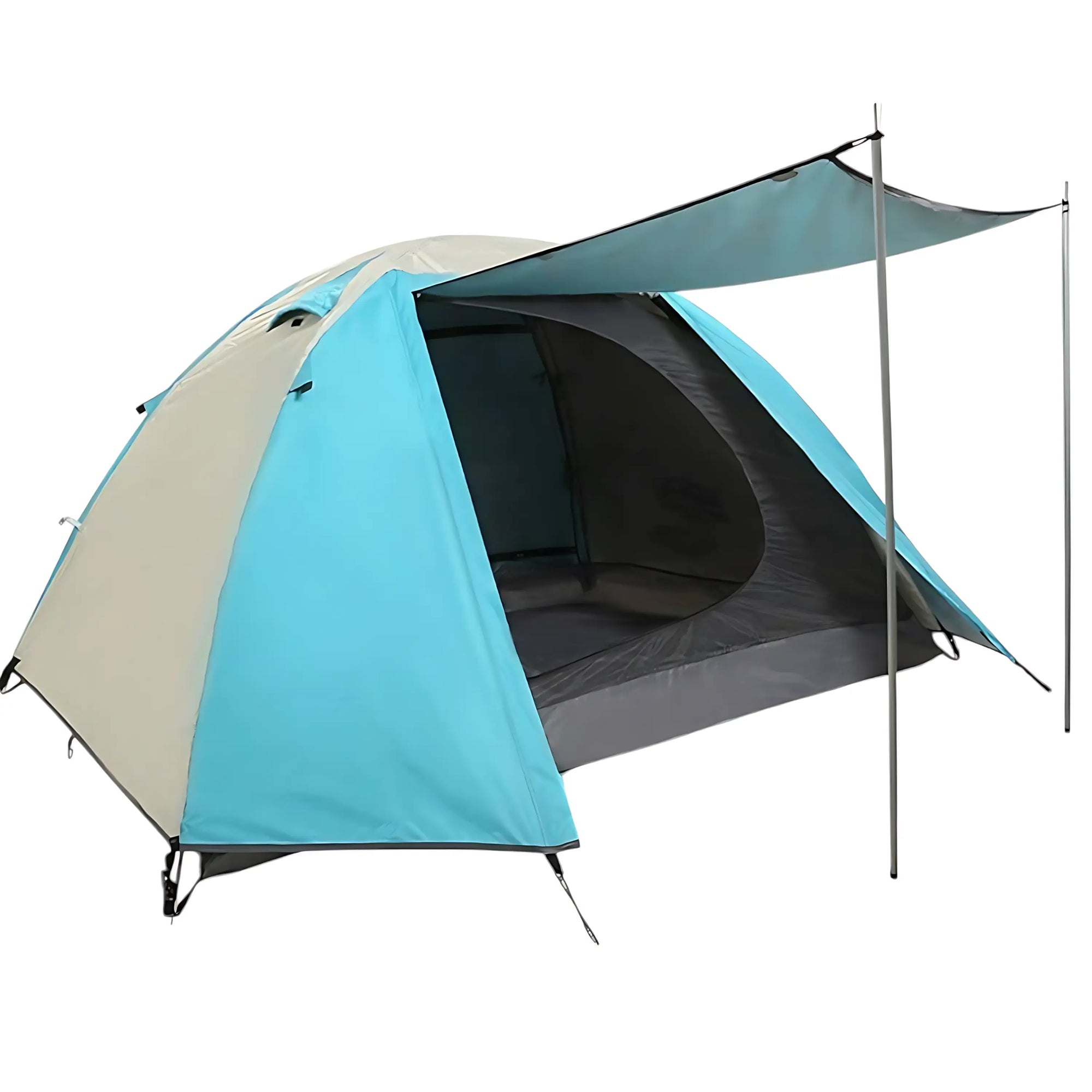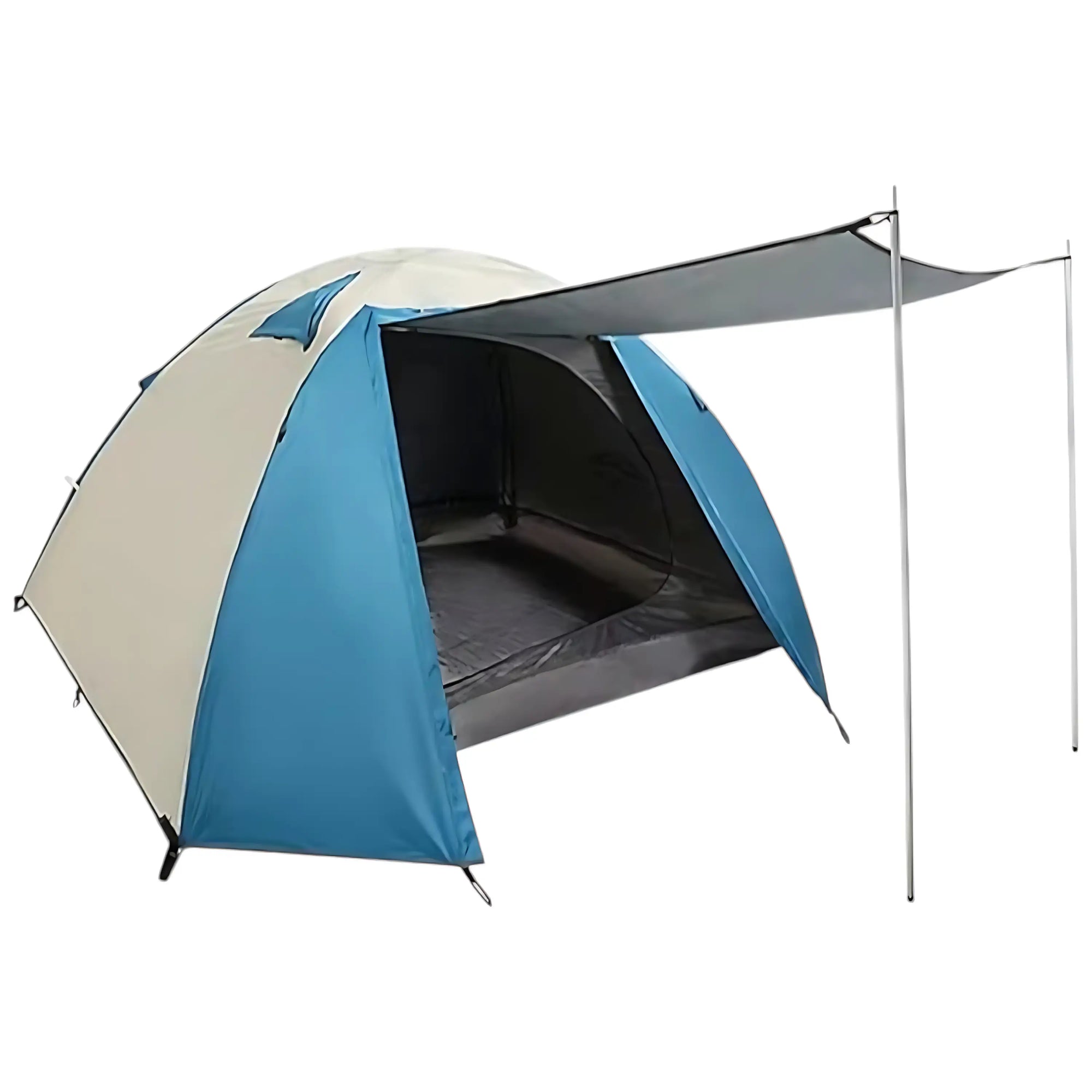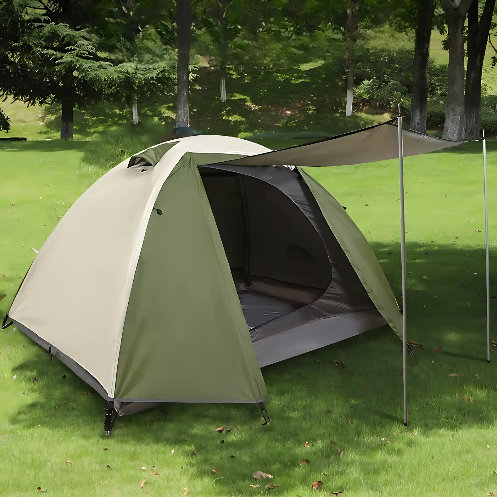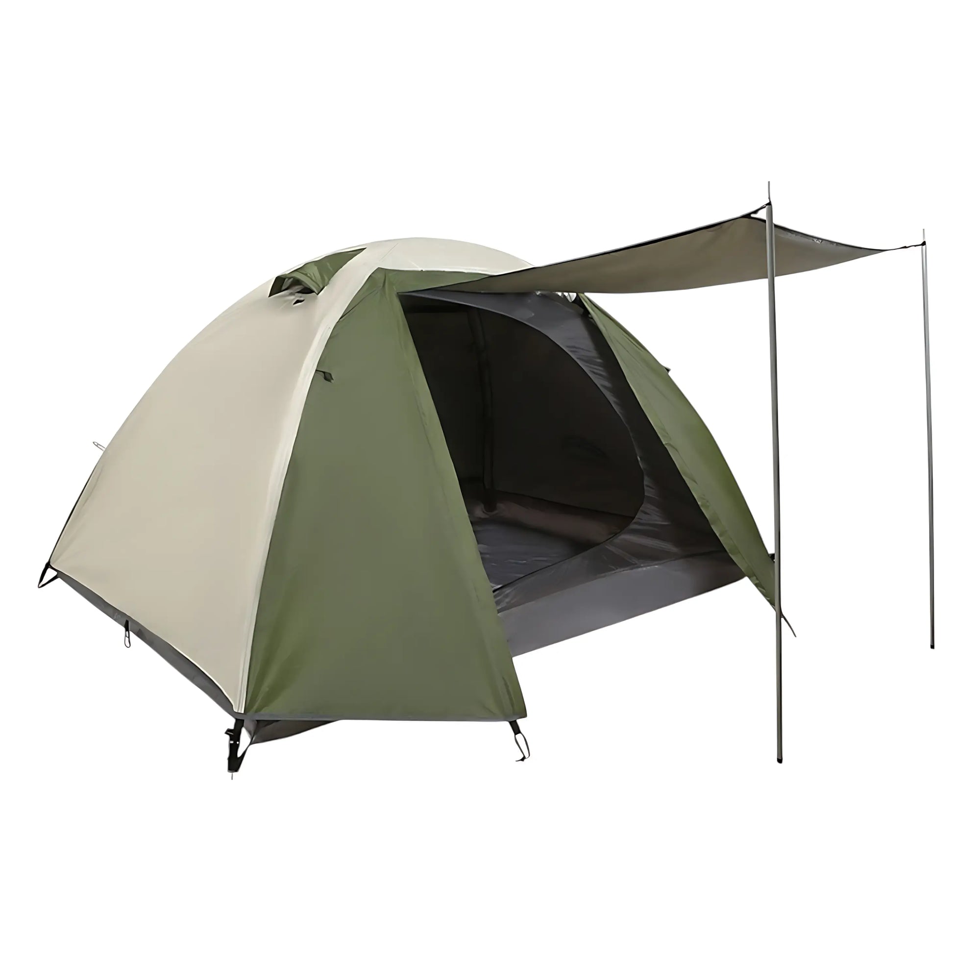 Camping 2 mann zeltmit doppelwandiger Konstruktion aus wasserabweisendem Polyester Taffeta und verstärktem Oxford-Bodenmaterial. Das Fiberglas-Gestänge ermöglicht einen schnellen und unkomplizierten Aufbau. Die Wassersäule von 1000-1500 mm bietet zuverlässigen Schutz bei normalen Wetterbedingungen. Hochdichtes Mesh-Gewebe sorgt für effektive Belüftung und hält Insekten zuverlässig ab. Geeignet für Trekkingtouren, Wanderungen und Campingausflüge von Frühling bis Herbst.