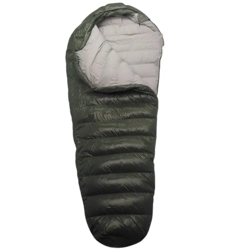 Camping schlafsack kälte in Mumienform mit 1000g Entendaunen-Füllung für Temperaturen bis -20°C. Das strapazierfähige Nylon-Außenmaterial eignet sich für anspruchsvolle Outdoor-Einsätze. Differenzierte Kammerkonstruktion sorgt für optimale Wärmeverteilung entsprechend der Körperzonen. Das 4-Punkt-Kompressionssystem mit abnehmbaren Gurten ermöglicht kompaktes Packmaß für Trekking und Expeditionen. Mit 1800g Gesamtgewicht bei Abmessungen von 205 x 88 cm geeignet für Wintercamping, Hochgebirgstouren und mehrtägige Outdoor-Einsätze bei Minustemperaturen.