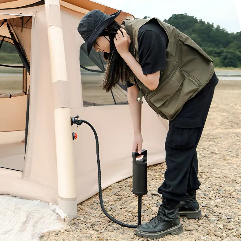 • Aufblasbare Konstruktion ohne Gestänge: Pneumatisches System ermöglicht Aufbau in 3 Minuten durch Aufpumpen der Luftkammern