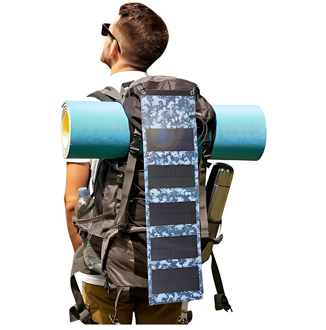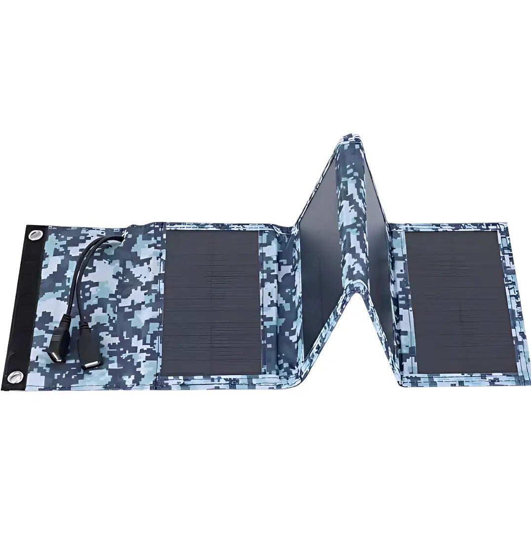 Monokristalline solarpanel faltbar mit 7W Leistung und stabilisierter 5V-Ausgangsspannung. Zwei USB-Anschlüsse ermöglichen das gleichzeitige Laden von Smartphone, GPS-Gerät oder Stirnlampe. Mit 300g Gewicht und faltbarem Design lässt sich das Panel platzsparend im Rucksack verstauen. Die integrierten Karabinerhaken erlauben die Befestigung am Rucksack, Zelt oder Fahrrad für Laden während der Tour. Geeignet für Trekking, Wanderungen und Outdoor-Einsätze. CE- und ROHS-konform.