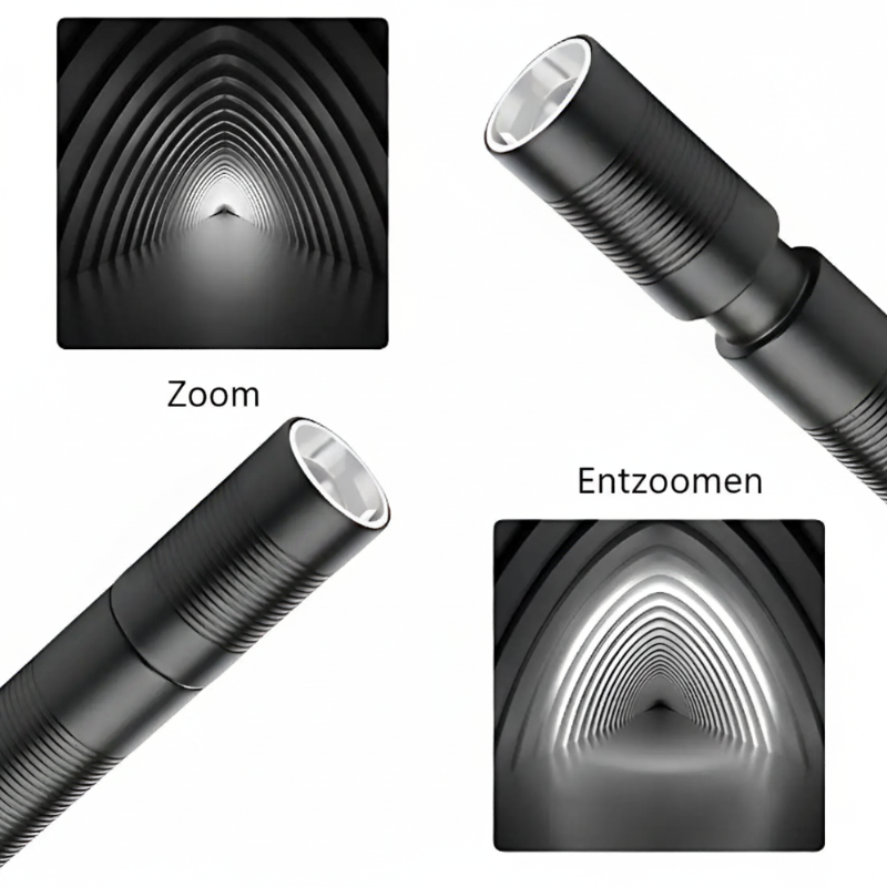 • LED mit mechanischem Zoom, Reichweite 200 Meter: Fokussierbare Ausleuchtung für verschiedene Distanzen